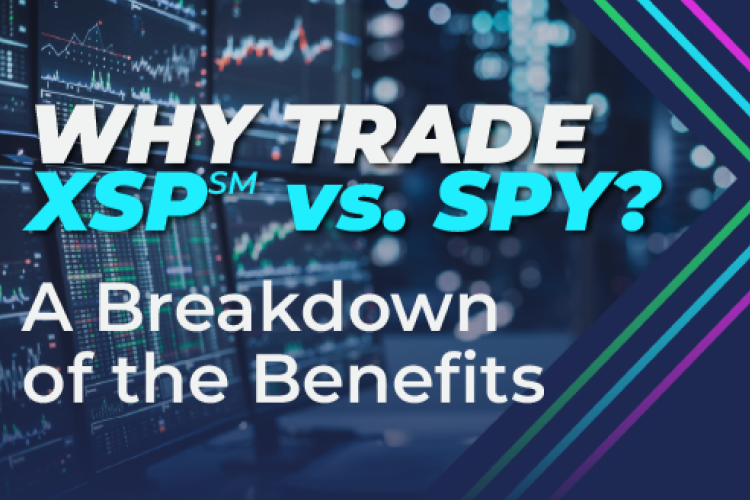 The S&P 500 Index option suite ranges from the standard size contract, SPX®, to the Mini-SPX (XSPSM) contract at 1/10th the size of SPX, to NanosSM at 1/100th the size of XSP. One of the many questions we get is why would a retail trader choose XSP versus the popular SPY ETF option? With both XSP and SPY having similar notional size (contract value), weekly expirations and PM-settlement, they are typically considered direct competitors. But XSP has a couple of advantages over SPY.